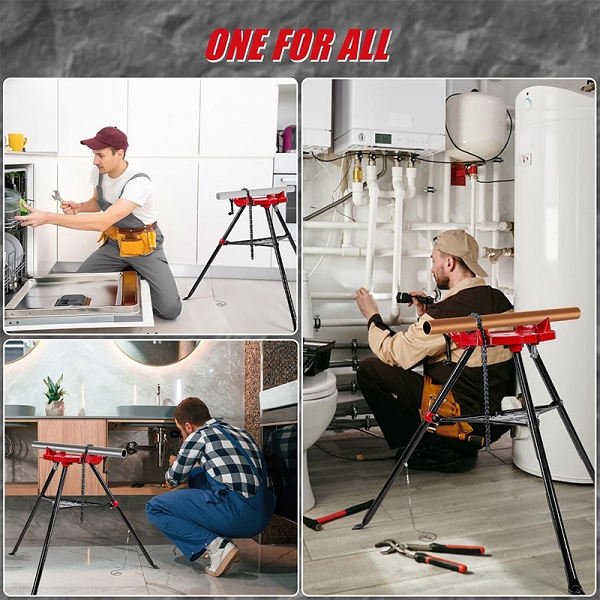 - Повышенная устойчивость: стальные ножки оснащены резиновыми накладками для предотвращения скольжения – обеспечивает повышенный уровень устойчивости, обеспечивая надежную и устойчивую платформу для надежного захвата труб (традиционные инструменты для фиксации труб, такие, как: ручные тиски или зажимы, часто не обеспечивают необходимой устойчивости, особенно при работе с большими или тяжелыми трубами)